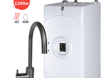 Everboil 2R Boiling water tap in brushed stainless with instant boiling & ambient water and a Stainless Steel Tank for filtered near-boiling drinking water.