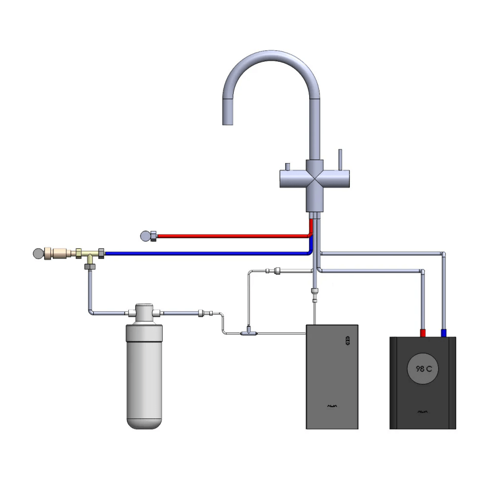 Alia Gold 4 in 1 boiling and chilled tap with instant near-boiling drinking water temperature of up to 98°C, 240v 2.5lt hot and 2lt chilled tank.
